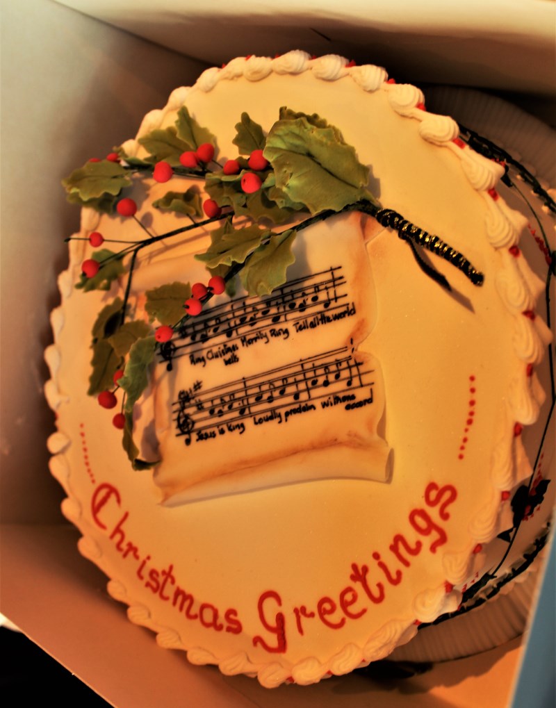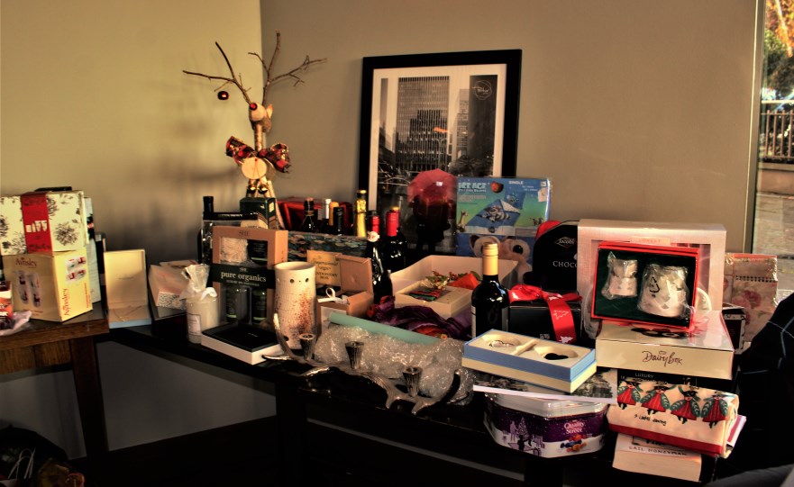 The “four elements” of any coffee morning are tea, coffee, pastries and chat. There was no shortage of any! Once the guests were settled in, the raffle tickets were sold, and the raffle got under way. Our MC was Cathaoirleach, Pádraig Ó Conaill, ably assisted by his “elves!” With so many prizes on offer, the raffle lasted at least an hour. There were many happy faces, but none so happy as Edel Ó Callanáin, whose ticket was first to be drawn out. She was the envy of all, as she chose the beautiful Christmas cake, made and decorated by Mary Cahill.
