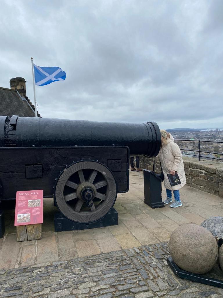 Edinburgh Castle is no doubt the most famous site in the city. There is so much to see here that it is the type of place to be returned to if one can again and again. This tall volcanic rock has been inhabited for over a millenium becoming a royal residence by the medieval era and giving rise to the city which grew up around it. There is a sense of power and majesty about the place that nearly defies description. Everyone who visits will have their own memories. It was so windy I had to buy a band for my hair in the giftshop to keep it attached to my head!
