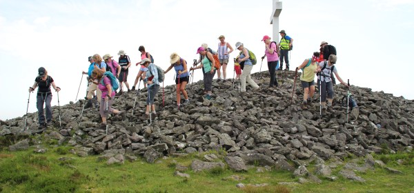 The summer hillwalk took us up to Cruachán in the Comeraghs, just north of Dungarvan. After meeting to car-pool, we were all assembled, counted and
